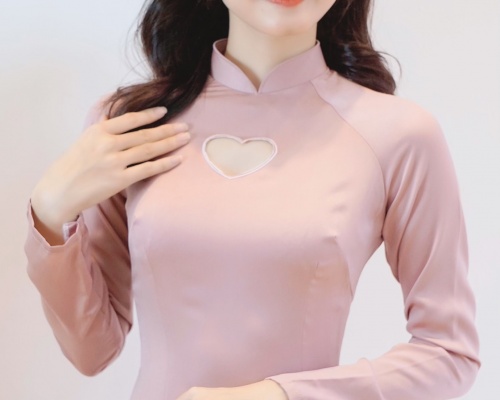 Aó Dài Bưng Quả tơ tằm Hồng kết hoa