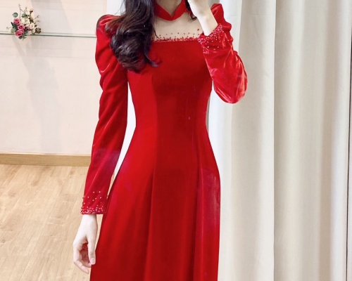 ÁO DÀI CÔ DÂU NHUNG ĐỎ