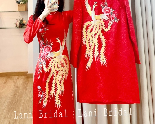 Aó Dài Bưng Quả Vàng Kem Đính Bướm