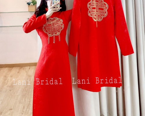 Aó Dài Bưng Quả Vàng Kem Đính Bướm