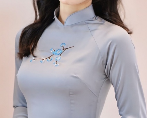 Áo Dài Xanh Ngọc Cổ Xéo Kết Hoa