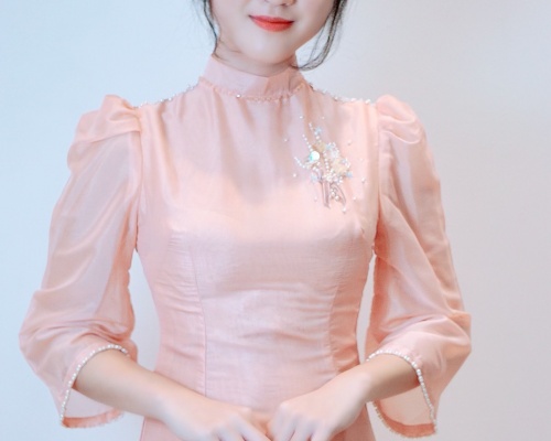 Áo Dài bưng quả Hồng kết hoa full size : S-M-L-XL