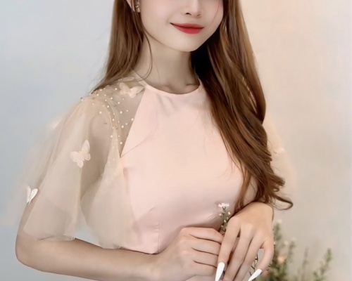 Áo Dài Nude Cánh Tiên Hồ Điệp