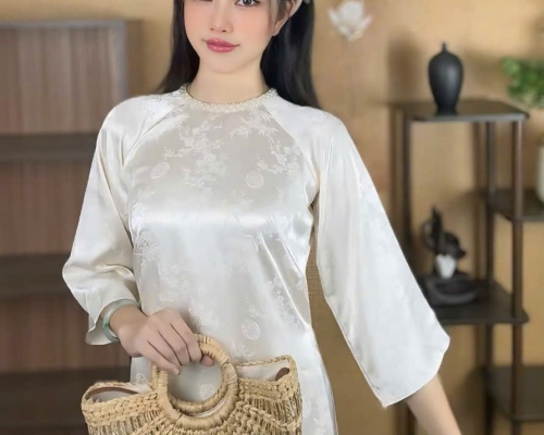 Áo Dài Voan Kem Thêu Hoạ Tiết