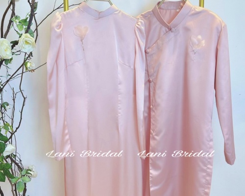 Aó Dài Bưng Quả tơ tằm Hồng kết hoa