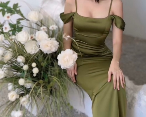 Áo Dài Xanh Ngọc Cổ Xéo Kết Hoa